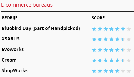 In het onafhankelijke onderzoek, verricht door Motivaction, werden we beoordeeld op vier verschillende criteria: kennis/knowhow, prijs-kwaliteitsverhouding, betrouwbaarheid en flexibiliteit en dat specifiek voor de categorie beste E-commerce bureaus.